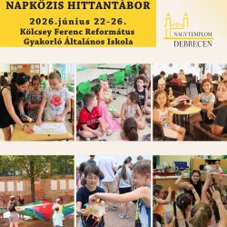 Szeretettel várunk minden fiatalt, napközis angol táborunkba! Scottish Camp Debrecen Angol nyelvi tábor – 2026 Időpont: 2026. július 6-10. (hétfő-péntek) Helyszín: Debreceni Református Kollégium Gimnáziuma Kiknek szól? A táborba 10-18 éves fiatalok jelentkezését várjuk. Részvételi díj: 40.000 Ft gyülekezeti tagoknak 50.000 Ft nem gyülekezeti tagoknak Testvérkedvezmény gyülekezeti tagok számára: 5000 ft/fő/testvér A részvételi díj magában foglalja: – napi háromszori étkezés – skót Read more about Scottish Camp Debrecen Angol nyelvi tábor – 2026[…]