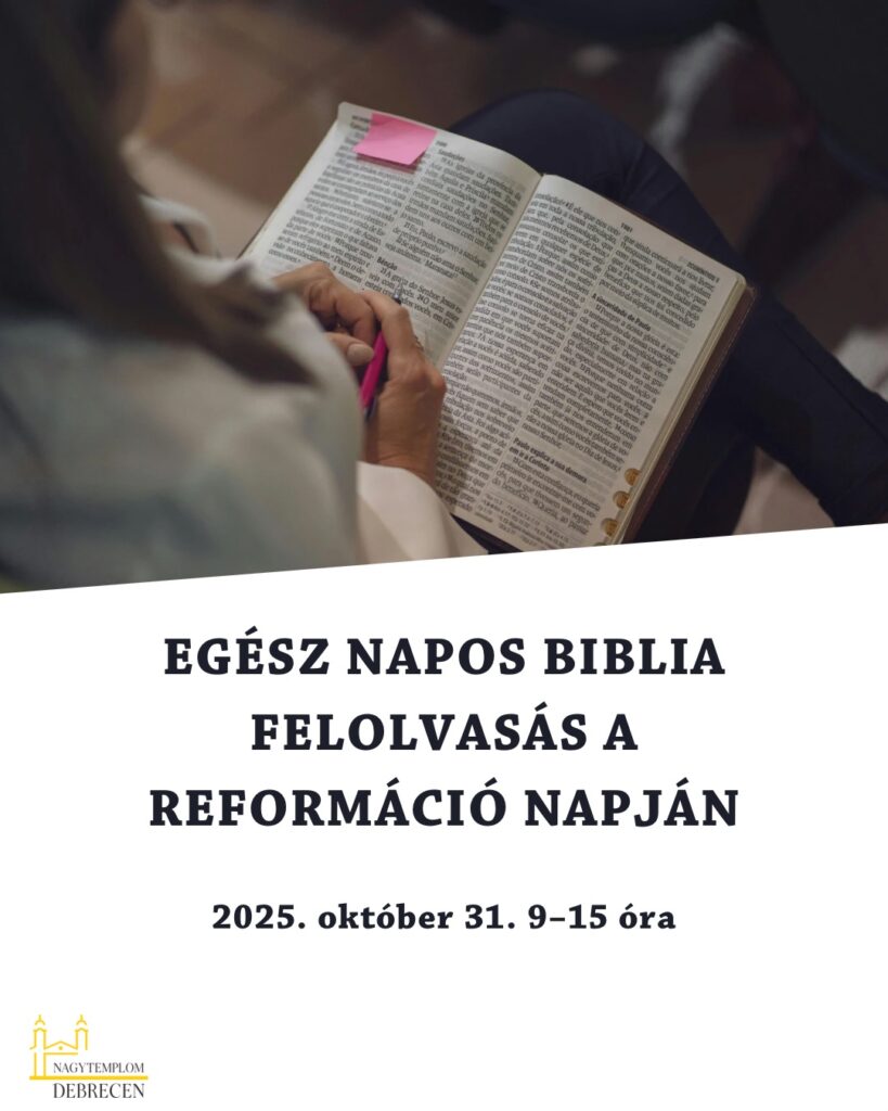 Október 31-én, pénteken, 09-15 óráig, a templom turisztikai nyitvatartási idejében, egész napos Biblia felolvasással hangoljuk a lelkünket Isten igéjére.