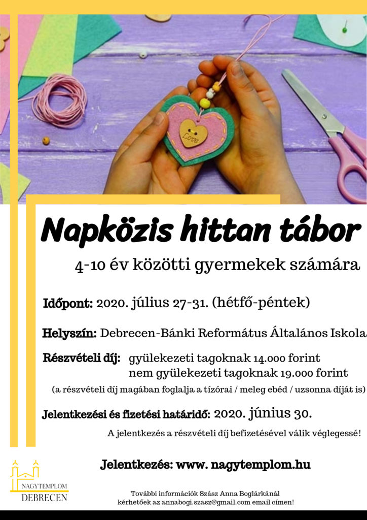 Idén is megtartjuk napközis  hittan táborunkat. Gyere el és tedd színesebbé a jelenléteddel a tábort  🙂