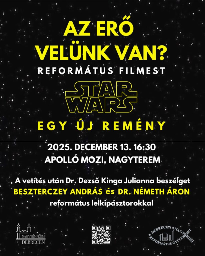 Szeretettel várunk minden érdeklődőt egy különleges református közösségi filmestre, ahol együtt nézzük meg a Star Wars – Egy új remény című filmet, majd beszélgetünk a történet számunkra, reformátusokra is érvényes üzeneteiről.