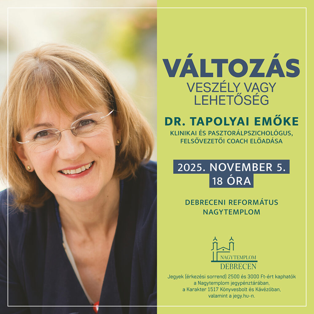 VÁLTOZÁS – VESZÉLY VAGY LEHETŐSÉG? – Dr. Tapolyai Emőke klinikai és pasztorálpszichológus, felsővezetői coach előadása